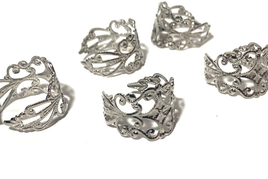 5st silverfärgade metall ringar i filigran med öppen baksida så passar alla storlekar 16mm bredd