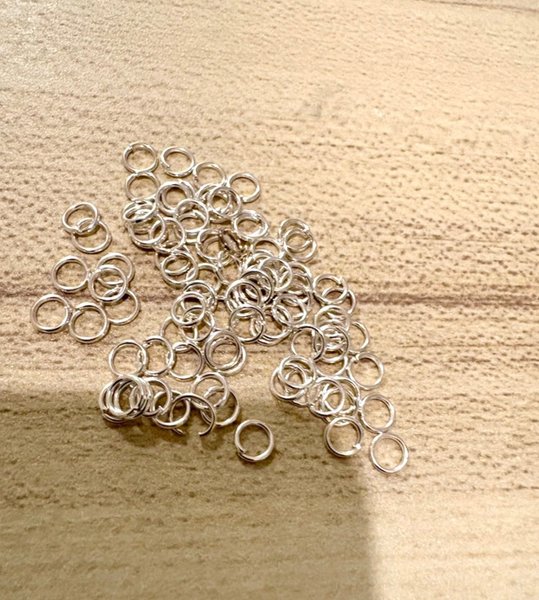 Ringar i metall för smycketillverkning. Mått 3-4mm, i vit silver färg. 88 stycken.