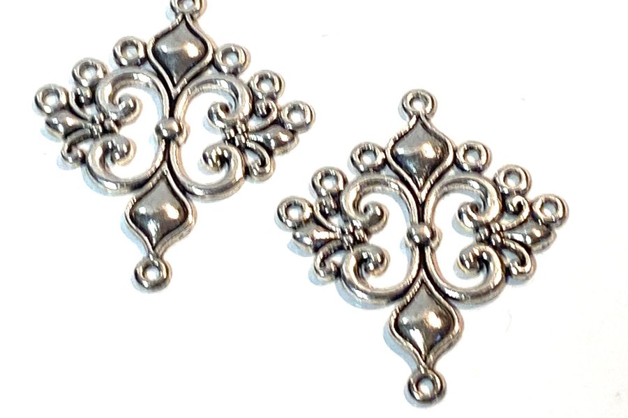 2st länkar för smyckestillverkning som har tribal formad mönster silverfärgade och är 36x30mm stora