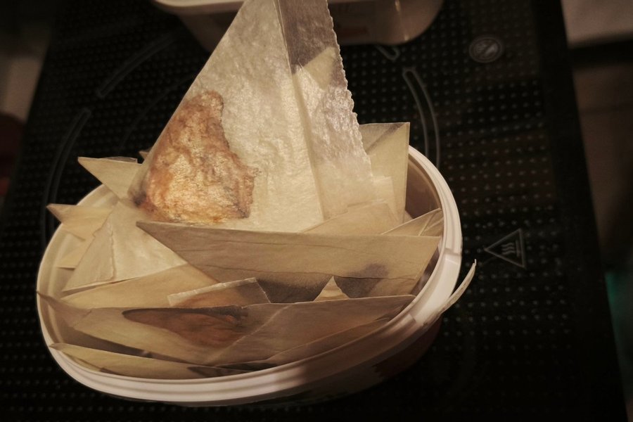 Torkade och ligger i kuvert, går bra att lägga i fukt och få mjuka igen om man vill det.