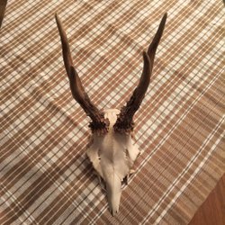 Ett horn från rådjur, perfekt för dekoration eller hantverksprojekt. Hornet har en naturlig form och textur som kan ge en rustik känsla. Mått kan variera, se bilder för referens.
