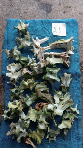 Hög med skelettben på cirka två kilo.