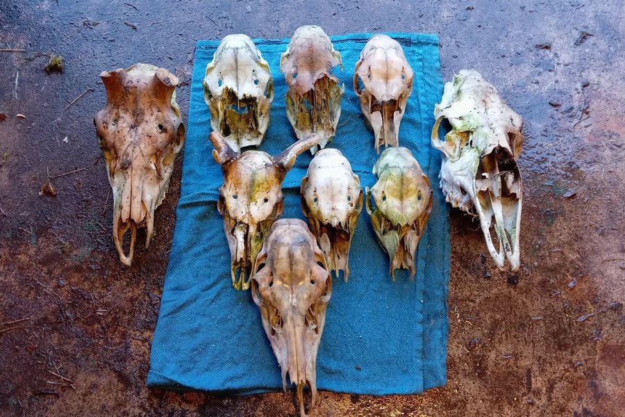Samling av djurskallar, lämpliga för dekoration eller samling.