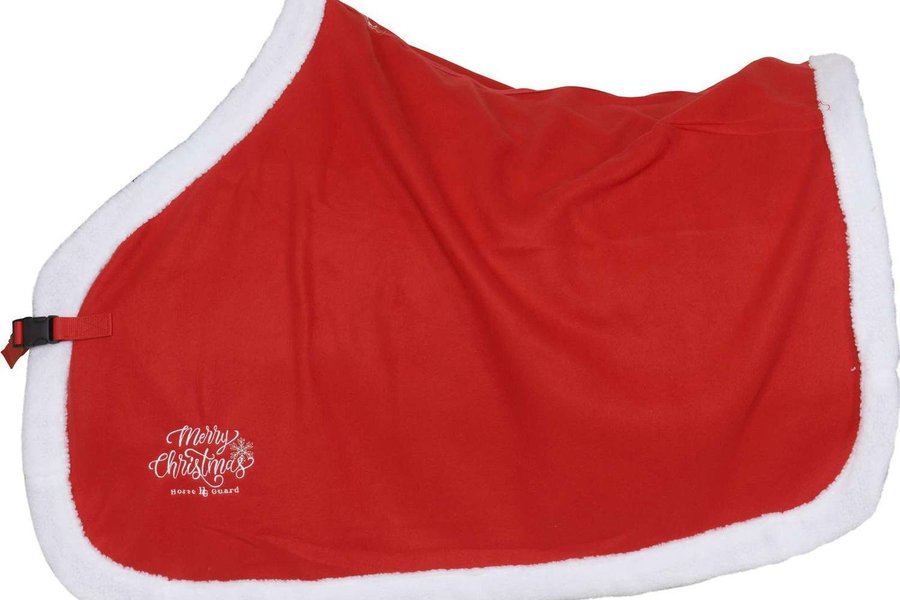 Horse Guard Ländtäcke av fleece med mysig teddykant. Perfekt till julfirandet med Merry Christmas text på vänster sida. Svansrem och remmar med knäppe att fästa i sadeln.
