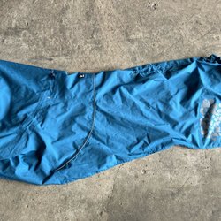 Ett blått stalltäcke från Haglunds i storlek 145 cm. 100g. Aldrig använt pga att hästen såldes innan vi ens hann prova det.