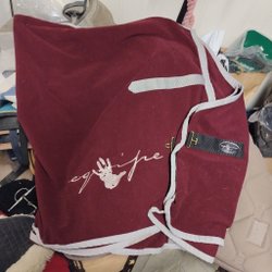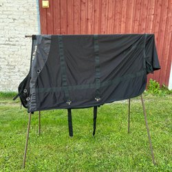 Svart fleecetäcke Back on Track. Storlek 155. Använt inne i stall en säsong. Nypris 1999 kr.