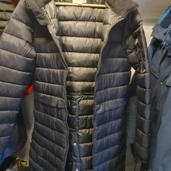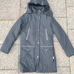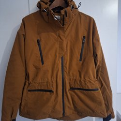 Jackan har en avtagbar huva och dragsko i midjan.