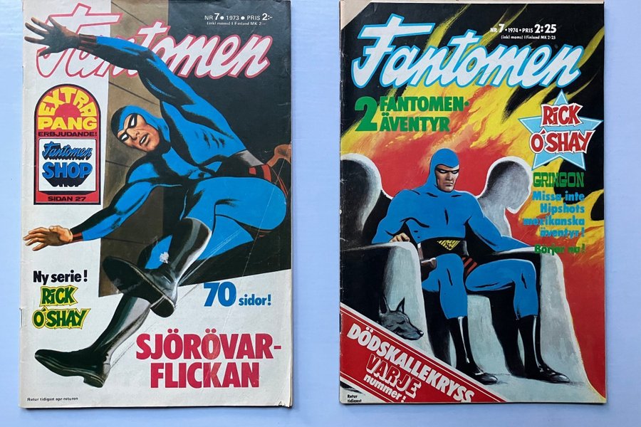 Två nummer av serietidningen Fantomen: Nummer 7 från 1973 och nummer 7 från 1974. Innehåller äventyr med Fantomen och Rick O'Shay.
