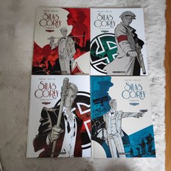 Ett parti med Fantomen affischer. Affischerna har olika motiv och utgivningsprogram från olika år.