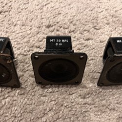 Kommer monterade på original baffel. Alla element är i samma fina skick som dem på bild med "ansiktet" utåt. Välskyddade bakom högtslartyget.