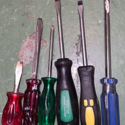Bitsats med olika typer av bits för skruvdragare. Innehåller bits för spår, Phillips, Pozidriv, Torx, insex och fyrkant.