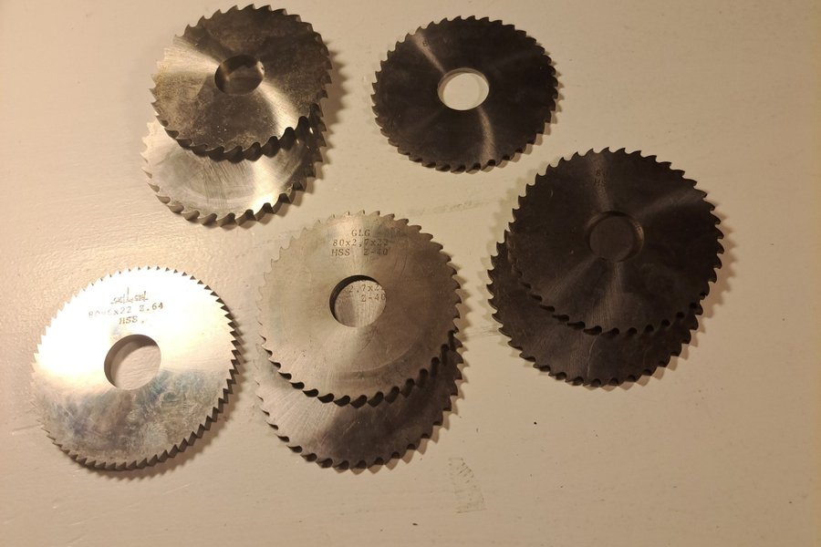 Skivfräsar 8st.Storlekar 2st 80x2.7x22 Z40, 1st 80x6x22 Z64, 2st 80x2.6x22 Z40, 2st 80x5.5x22 Z32 och 1st 80x2.9x22.