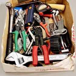 skiftnycklar, hylsnycklar, tänger och skruvmejslar. Även lösa skiftnycklar.