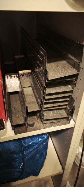 435mm långa, 90mm och 45mm breda ca. Avdelare på några. Kommer från gammal verktygshurts.