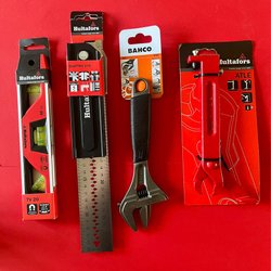 Detta verktygspaket innehåller ett brett utbud av verktyg för olika ändamål. I paketet finns bland annat en vinkelslip, en verktygsväska, flera pannlampor, 2 arbetslampaor, en multimeter, 2 bågfil, en hammare, en kofot, olika tänger, skruvmejslar, bits, borrar, knivar, lödverktyg och hörselskydd. Dessutom ingår diverse tillbehör som måttband, skruvar och bitsförlängare.
