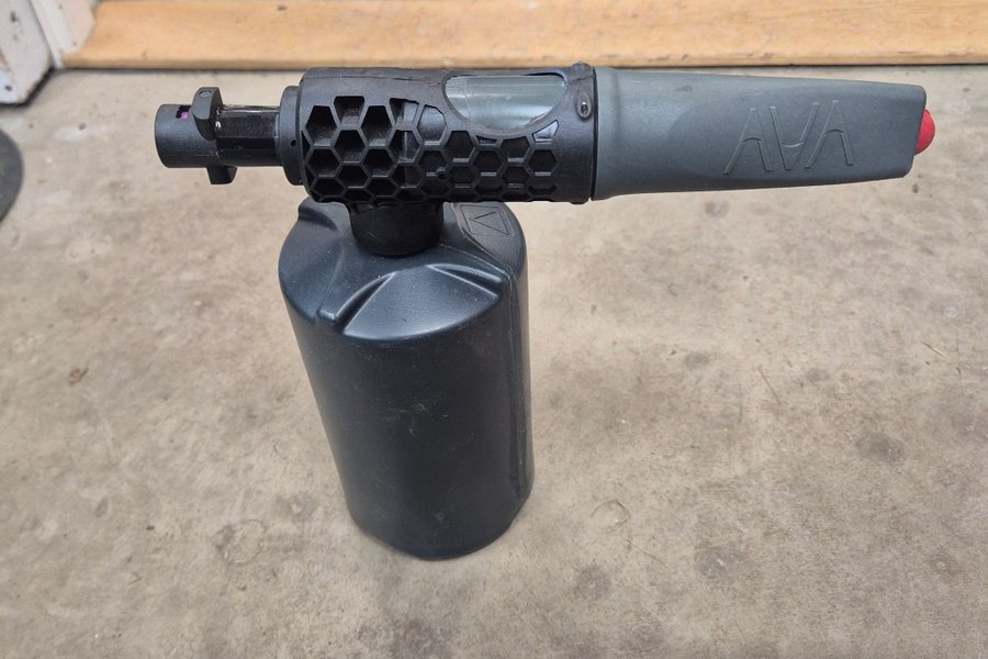 En skumkanon från AVA, designad för att användas med högtryckstvättar. Den har en robust konstruktion och är enkel att montera.