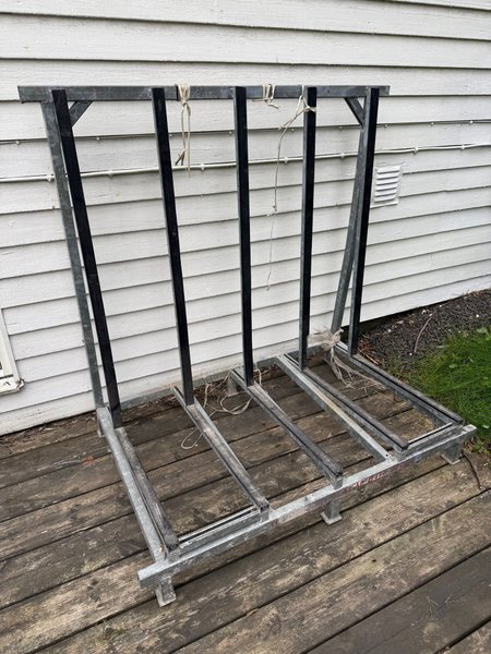 Metallställning för förvaring eller transport av glas och glaspartier.