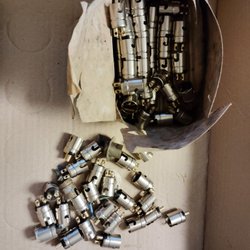 Denna verktygssats innehåller olika delar för rörbearbetning. Huvudverktyget är 21 cm långt och 19 cm högt. En mindre klämma är 10 cm lång. En metallplatta med olika runda insatser är 15 cm lång och 15 cm bred. En metallstav är 29 cm lång.
