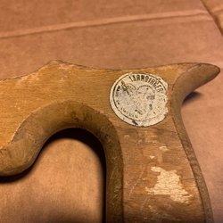 En klassisk handsåg med trähandtag, patina, visst slitage på trä. Egg ser bra ut. Intressant konst på trä. Perfekt för diverse sågarbeten. Längd 80 centimeter.