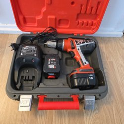 Black & Decker skruvdragare i tillhörande förvaringslåda. Laddare och bits medföljer.