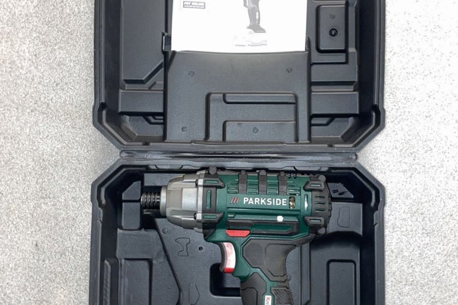 Knappt använd Parkside borrmaskin med förvaringsväska. Manual medföljer.