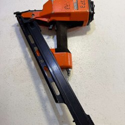 Skick: Begagnad, slitage, smuts, färg, märkning och märken förekommer. OBS delen/fjäder för att ta ur spik från magasinet saknas, se bild, vi lyckas dock att både mata in och ur spik ändå.Vid funktionstest fungerade det att skjuta med spik i pall/träskiva, se bild. OBS se samtliga bilder för egen bedömning det kan alltid finnas mer anmärkningar, även saker som inte syns på bild.