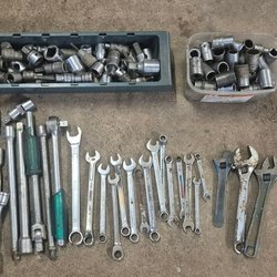 Ett paket med olika verktyg. Innehåller bland annat skruvmejslar, tänger, polygriper, knivar och en rörtång.