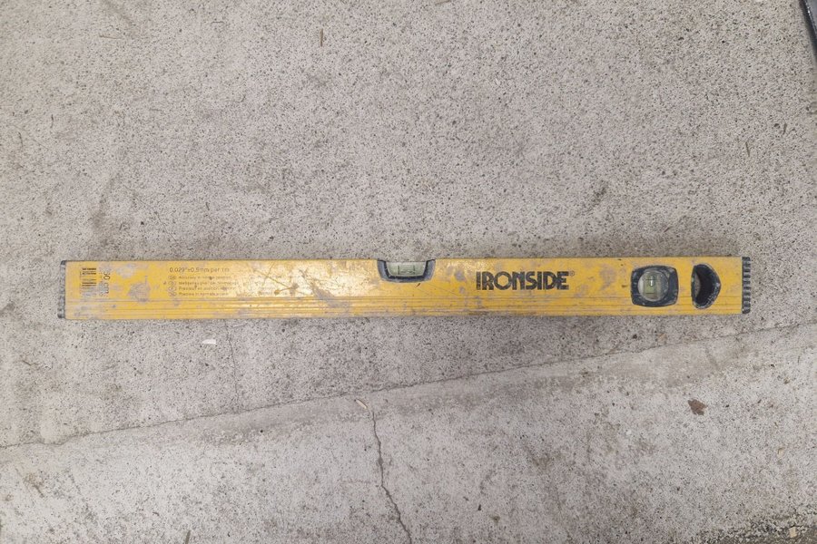Vattenpass från Ironside, 60 cm långt. Noggrannhet på 0,5 mm per 1 meter i normalposition.