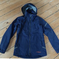 BJÖRNKLÄDER arbetsjacka strl 44-46. Hel och bra skick. Svart och blå. Firmatryck på ryggen. Dragkedja framtill och hög krage. Jackan har en luva som kan justeras med dragsko. Ärmsluten är justerbara med kardborreband.