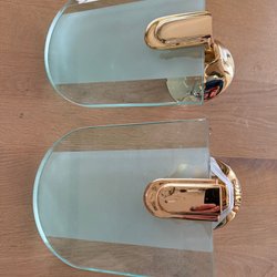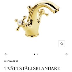 Handfat i vitt porslin med en monterad blandare. Blandaren har en kromad yta med guldfärgade detaljer på handtagen. Längd ca 515 mm och bredd ca 260mm. Passar ett mindre badrum eller gästtoalett.