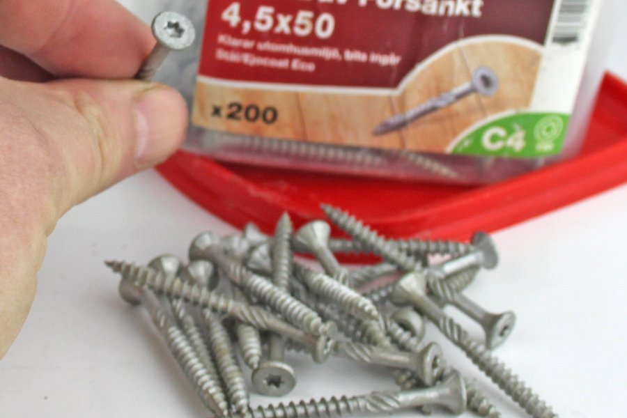 En sätthärdad träskruv med beläggning (Ejocoat plus) som är godkänd för