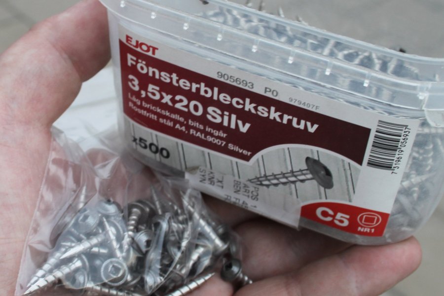 NYA! 50 st Fönsterbleckskruv 3,5x20 mm RAL9007 Mörk Silver Syrafast stål A4 Ejot