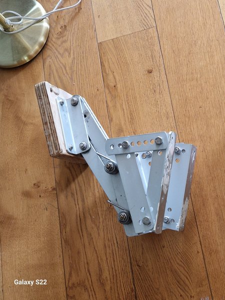 Motorfäste för utombordare, fällbart upp-o ned inkl vinkelfäste så går att ställa för olika vinklar på akterspegeln.