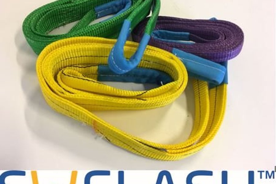Paket med kvalitativa bandstroppar. Tillverkade med dubbla lager av kraftig polyesterväv med vikta förstärkta öglor. Färgkodade efter lyftkapacitet.