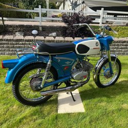 3växlad. Med 2.9 cylle 17 mm förgasare ny framgaffel nya fälgar med nya däck nytt sadel nya bromsar stötdämpare bak avgasrör ca 65km går bra i motorn