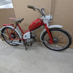 Fantastiskt fint skick, går mycket bra. Toppar ca 40km. Har stått på ett museum i Holland under väldigt många år, därav skicket. Svårt att veta årsmodell, men de tillverkades 66-68. Finns säkert någon som vet mer.