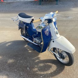 Alabama i bruksskick, matching numbers, går bra ca 60 km/h vet inte vad dom sitter på för cylinder och förgasare. Ny ljuddämpare och framlyfta från Puch Verkstan, bytta bussningar i gaffel fram. Sprucken framskärm och bröstplast enligt bild. Nopprigt krom på tank. Troligen 74.