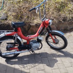 Mattsvart. 60cc, trimförgasare och ljuddämpare. 2vxl hand. Mycket nytt. Går bra. Lite småfix/inställning. Originaldelar medföljer. Säljes som den står. Förvarad inomhus i varmgarage. Finns att se och hämta i Järna söder om Stockholm.