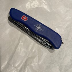 Leatherman Rev multiverktyg i metall. Verktyget har en kniv, tång, fil, flasköppnare och skruvmejslar. Det finns en bältesklämma på baksidan. Verktyget är märkt med "Toyota Safety Sense" på ena sidan.