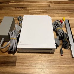 Säljer en Nintendo Wii konsol i svart. Inkluderar en handkontroll, strömadapter, sensor bar och kablar och ett spel på CD. Skick enligt bilder.