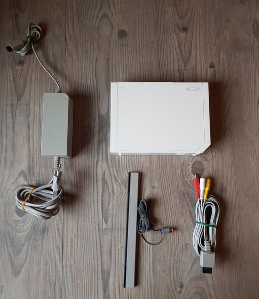 Nintendo Wii konsol. Strömkabel, AV-kabel och sensorbar medföljer