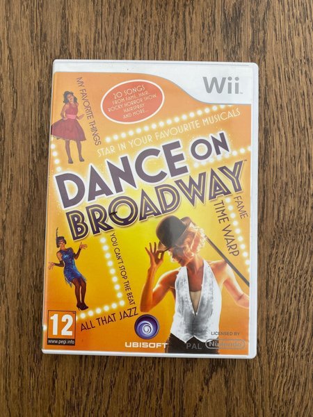 Dansspelet Dance on Broadway till Nintendo Wii. Innehåller 20 låtar från Fame, Hair, Rocky Horror Show, Hairspray och fler.