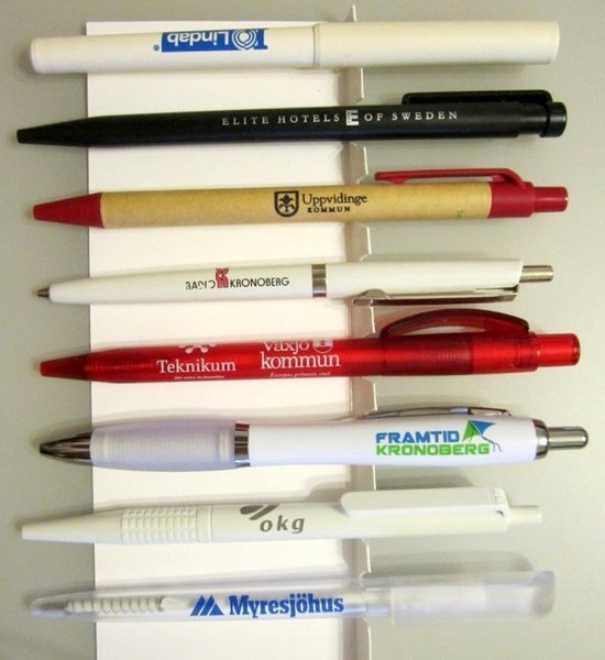 Reklam/kulspetspenna 8 st.: Lindab, Elite Hotels of Sweden, Uppvidinge kommun, Radio Kronobeg, Vöxjö kommun, Framtid Kronoberg, okg, Myresjöhus.