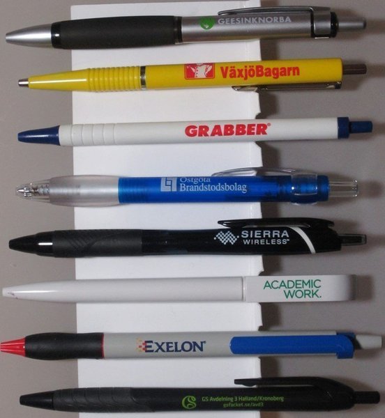 Reklam/kulspetspenna – 8 st.: Geesinknorba, VäxjöBagarn, Grabber, Östgöta Brandstodsbolag, SIERRA Wireless, Academic work., Exelon, GS Avdelningb3 Halland/Kronoberg gsfacket.se/avd.3