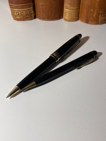 Auktioneras: 2x Pennor; 1x Bläck. 1x Stiftpenna.