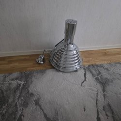 Säljer en taklampa med kromfinish. Perfekt för att skapa en modern och stilren känsla i hemmet. Lampan har en unik design som ger ett vackert ljus.