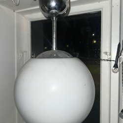 En stilren taklampa som passar i de flesta rum. Den har en enkel design med en vit skärm och svart sockel