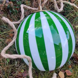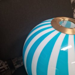 Grönvit randig lampa i glas. Otroligt fin!