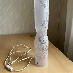 En vacker bordslampa med glasskärm och fot. Lampan ger ett behagligt ljus och passar perfekt som stämningsbelysning i hemmet. Mindre bruksslitage kan förekomma. (Lampan medföljer ej.
