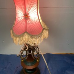 Bordslampa med rosa skärm